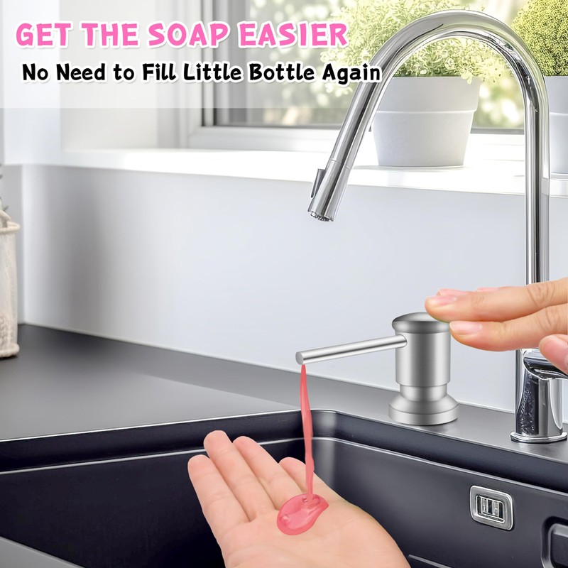 Sink Soap Dispenser, OHiHi Kitchen Sink Soap Dispenser with 47" Extension Tube, Wide Pump Head Base, No Water Leaking, No Need to Fill The Little Bottle Again, Brushed Nickel
