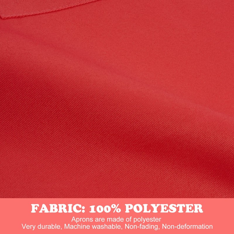 - One Front Pocket; The aprons have adjustable long waist ties and neck ties