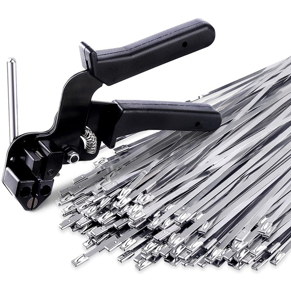 - ECONOMICAL AND PRACTICAL TOOL KIT - 1 Tie gun designed for stainless steel ties and 150 pieces of stainless steel ties. The ties have a dimension of 4.6 mm in width and 300 mm in length, and can be extended indefinitely by connecting one by one. The 150 pieces of ties can easily meet your daily use requirement, which means you don't need to buy additional ties, so it is an economical choice for you.