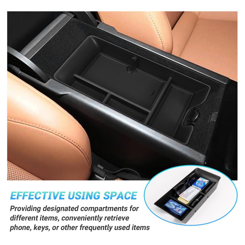 - Layered Storage Design: Our center console organizer tray divides the original armrest box space into upper and lower layers; The upper layer stores daily small items, while the lower layer hides infrequently used items, maximizes storage capacity
