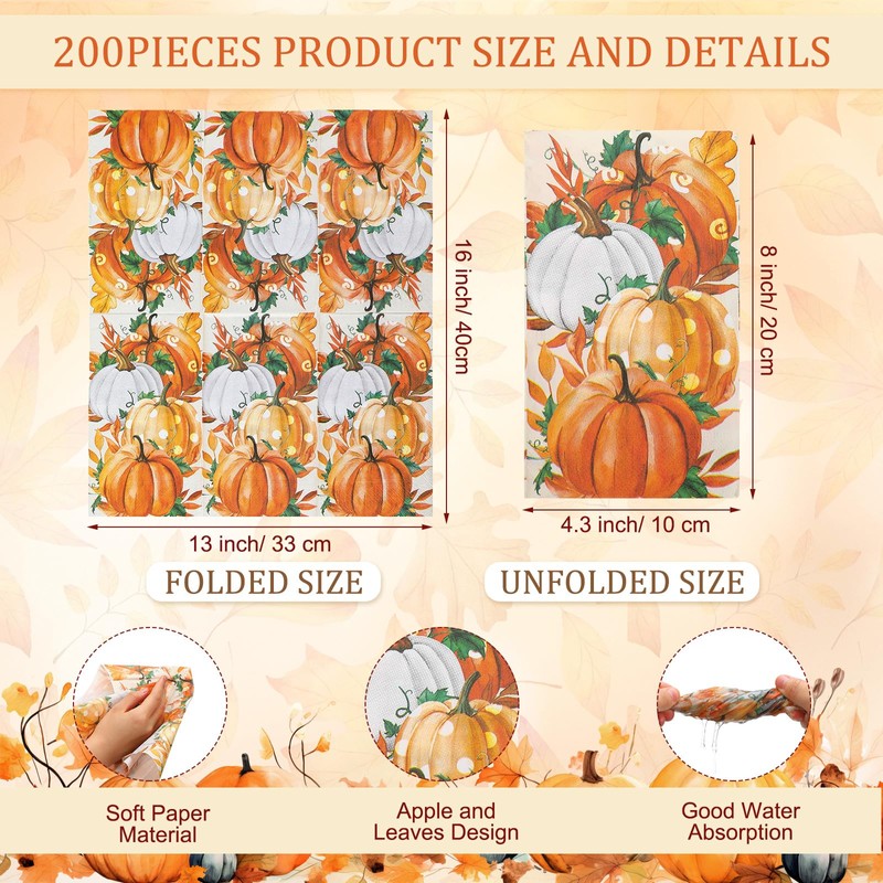 - Rich in Quantity: this package comes with 200 pieces of fall pumpkin hand paper towels for bathroom, the quantity is sufficient to meet your daily and party usage needs, you can also share them with others