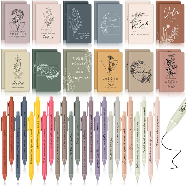 - Packungsinhalt: Unser Motivationsgeschenkset enthält 24 Motivationsnotizbücher und 24 Kugelschreiber. Die Notizbücher und Kugelschreiber sind in 12 verschiedenen Designs erhältlich, mit zwei Artikeln für jedes Design. Bei dieser Vielfalt an Optionen finden Sie mit Sicherheit das Design, das Ihre Botschaft der Ermutigung oder Anerkennung am besten zum Ausdruck bringt