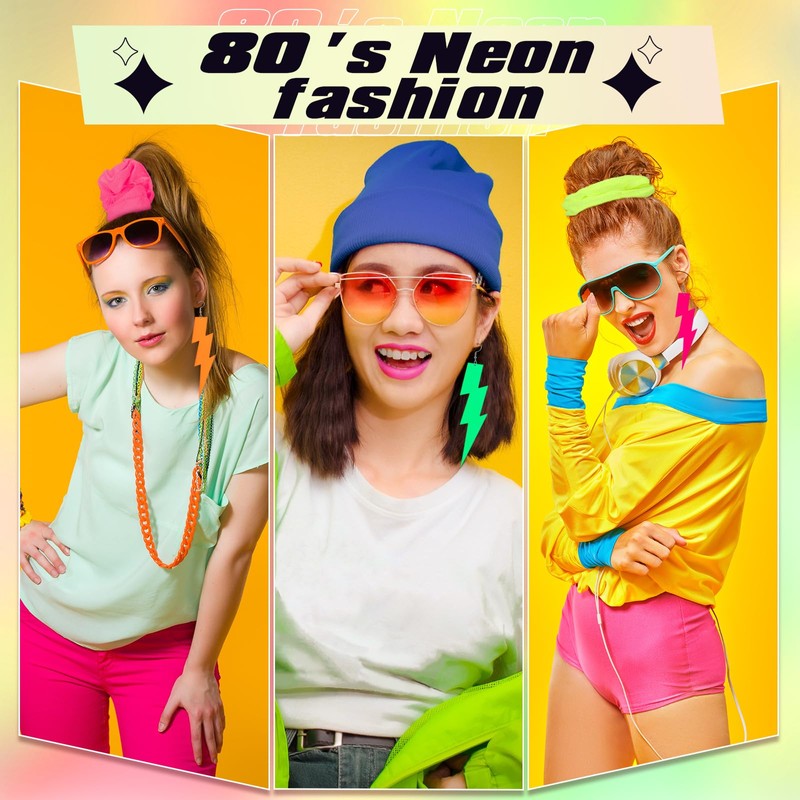 - Attractive Vibrant Colors: the collection offers an array of neon colors; This variation allows you to easily use these neon jewelry for women to match with your outfits while flattering your look and personality, fitting for wearing to 80's theme parties, vintage parties, raves or cheerleading
