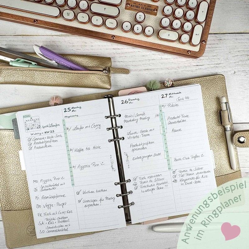 So that the calendar insert also fits perfectly into your ring planner, here are all important information: