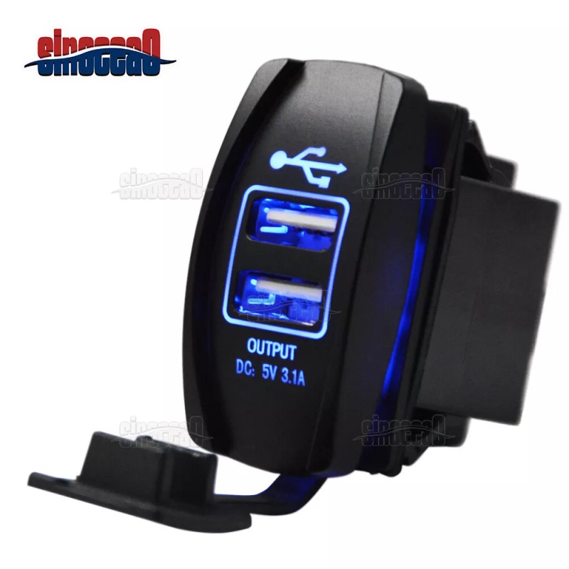 sinocea0 LED Blue Dual USB Power Charger Switch For Can-Am Maverick X3 Commander Defender