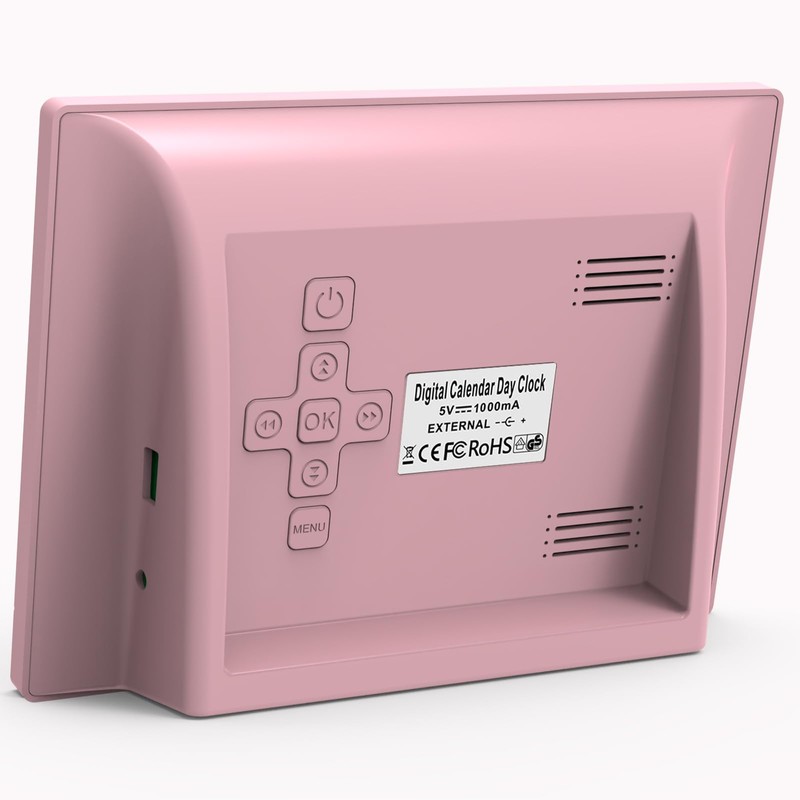 SINOIDEAS 3.0 Upgrade 7 Inch Digital Calendar, Senior Clock, Dementia Watch, Clock with Date and Weekday, Dementia Aid, Calendar for Dementia Patients (Pink with Remote Control)