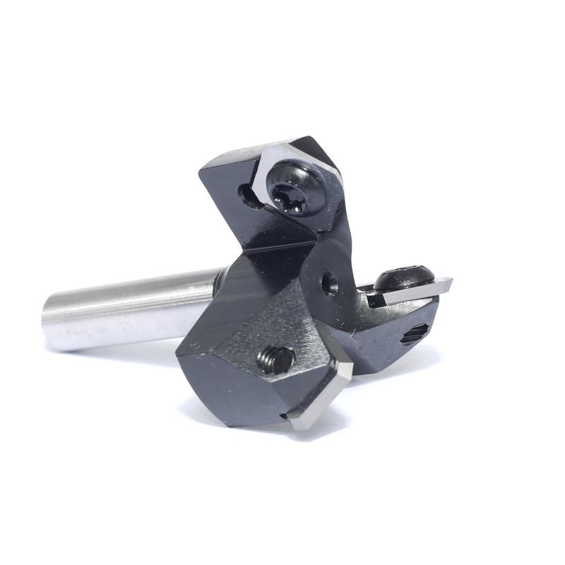 • Technical: diameter 38 mm, shaft 8 mm, with 3 interchangeable carbide blades 10.5 mm x 10.5 mm x 1.5 mm, 4-sided. Change the inserts if necessary, which are sold under the ASIN "B0C6DVZ6CN". The reversible blades can be replaced with a Torx key.