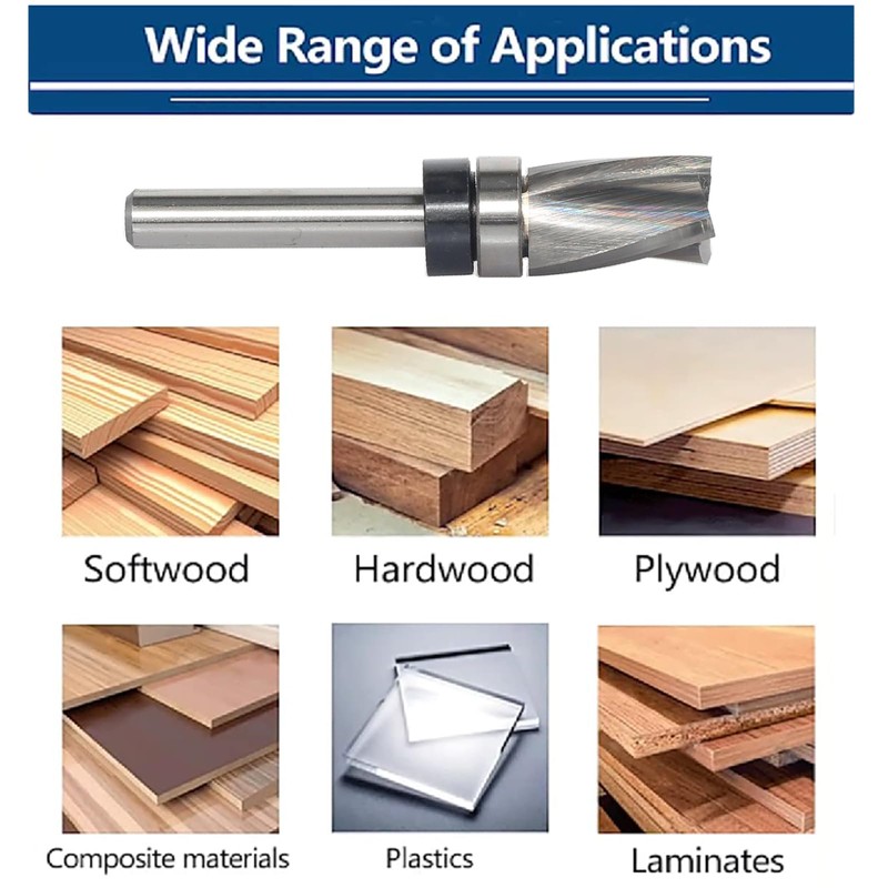 - 【Applications】Sinoprotools flush trim router bits perform well on plywood, MDF, solid woods, plastic laminates and non-ferrous metals. It can be used on hand held and table mounted portable routers with 1/4" collet.