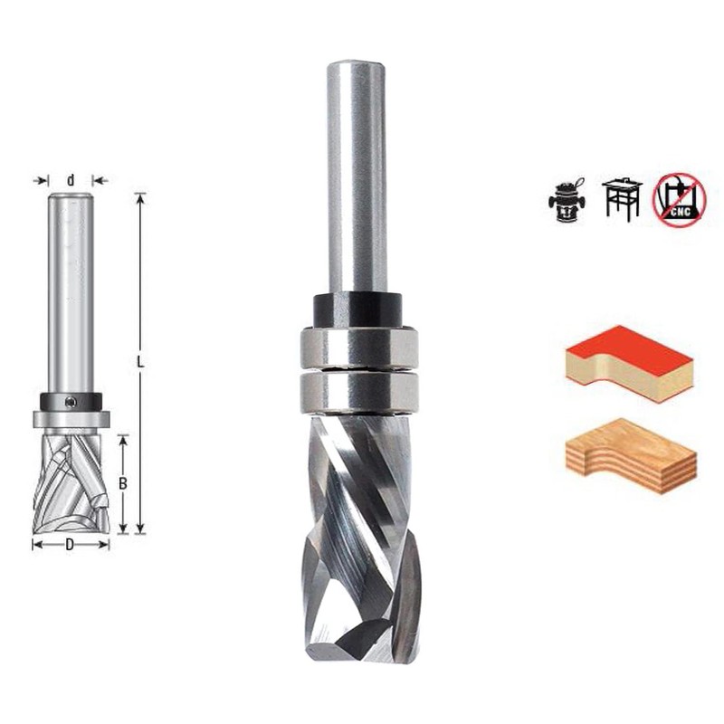 - Accurate size: spiral cutter with 8 mm shaft diameter, 12 mm cutting diameter, 25.4 mm cutting length, 80 mm total length, the cutter is very precisely processed and there is no diameter difference between bearing and cutter diameter. This creates a very even edge when flush milling.