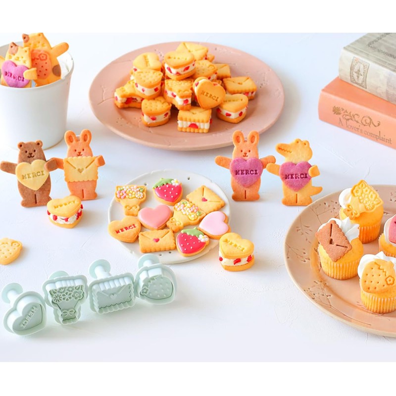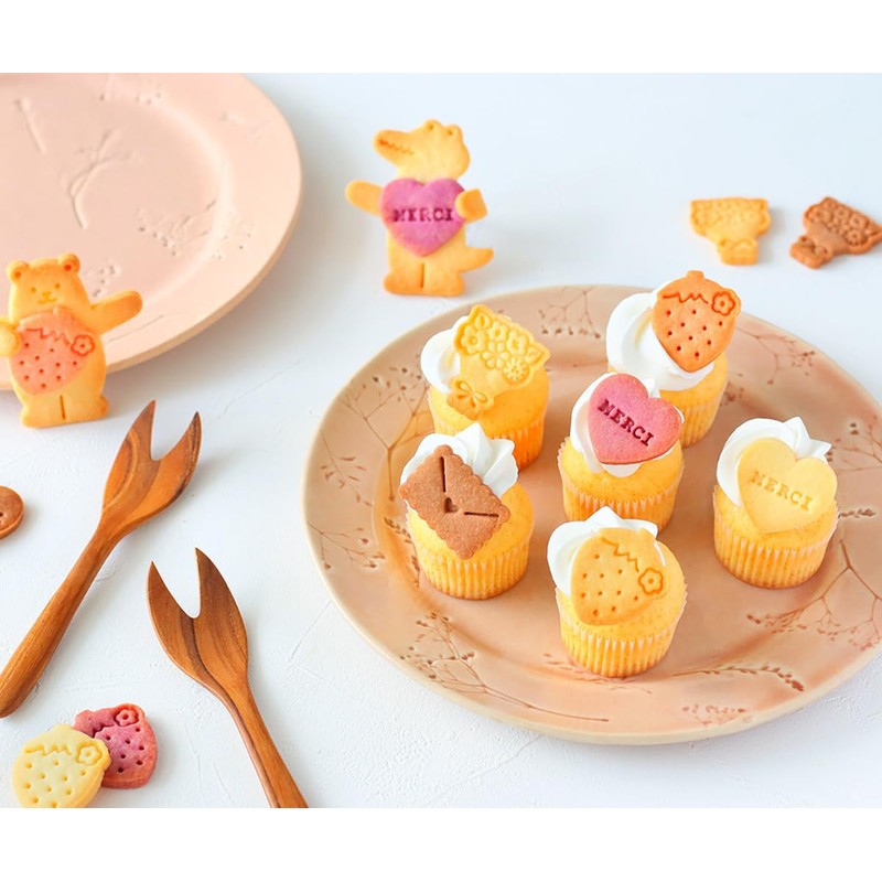 - Cuddly Huggy Cookie Cutters Set: 8 style includes: bear, rabbit, cat, crocodile, bouquet, heart, envelope, strawberry. It looks cute if you fold both arms back and have the animals hold the accessories from Mini Valentine's Day Set before baking them together