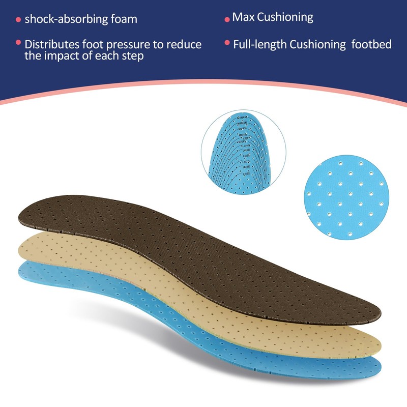 - Feel Cool: soft sole insoles come with breathable holes, which allow air circulation inside your shoes, increase breathability and absorb sweat, so that your feet can breathe, giving you more comfort when walking; The surface fabric also helps keep your feel cool