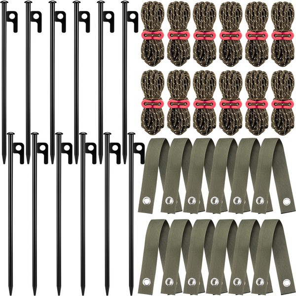 Sintuff 36 Pcs Heavy Duty Tree Stake Kits Tree Stake and Support for Young Tree Leaning Tree Anchor Straightening Kit, 15.8'' Support Straps, 11.8'' Steel Tree Stakes, 13.12ft Rope (Army Green)