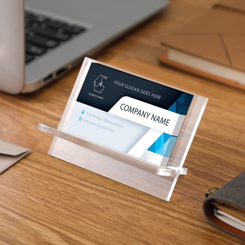 Sintuff 4 Pack Acrylic Business Card Holders for Desk Heavy Duty Clear Plastic Business Card Holder Display Desktop Name Card Stand Organizer for Exhibition, Office, Restaurant, 50 Card Capacity