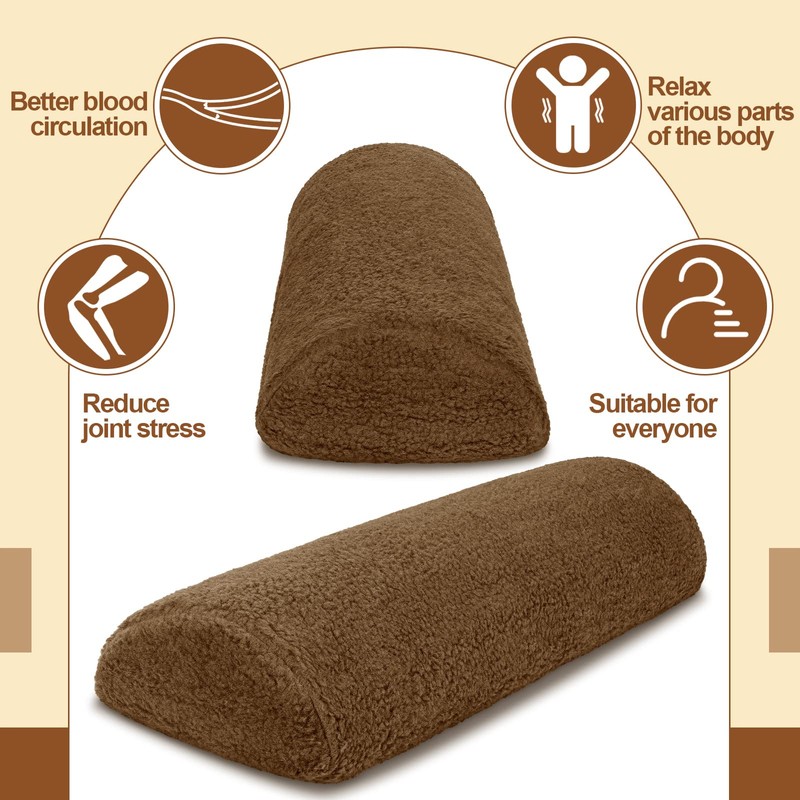 Sintuff Recliner Leg Rest Cushion Sofa Footrest Pillow with Cover Half Moon Bolster Pillow Under Knee Pillow for Sleeping On Back Alleviating Pain, 19.7 x 8 x 3.5 Inch (Brown)
