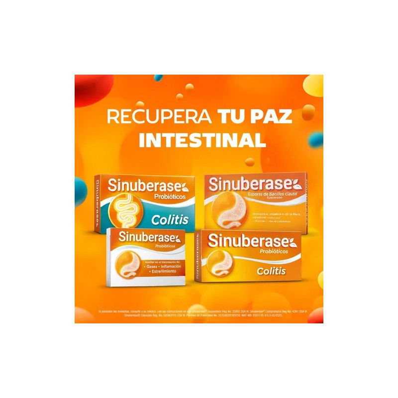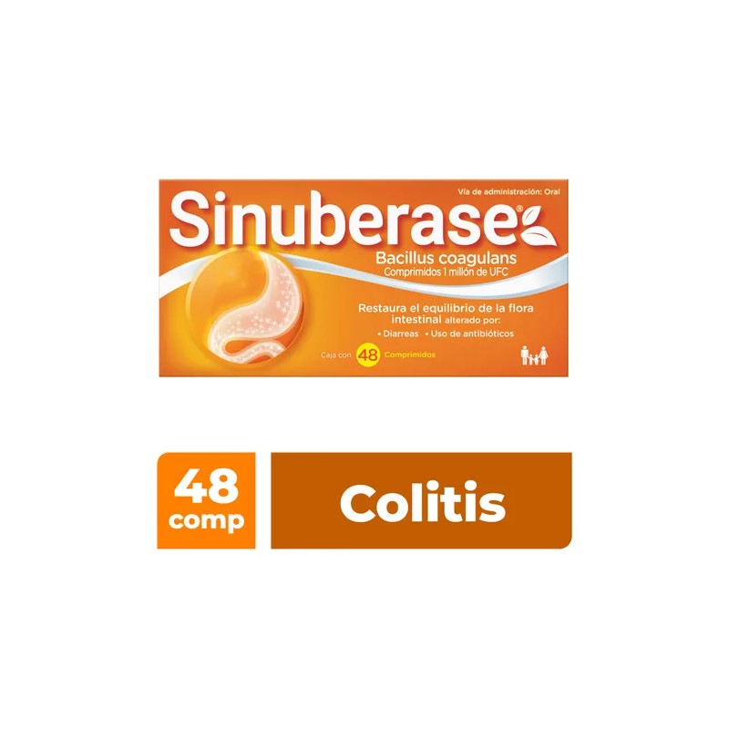 Sinuberase Probióticos Bacillus Coagulans 1 millón UFC 48 comprimidos. Alivia los Síntomas de la Colitis Desde la Raíz: Dolor, Inflamación, Distensión