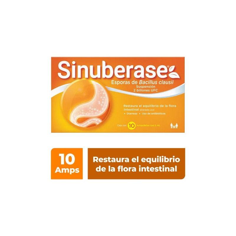 Sinuberase Probióticos en Suspensión 2 Billones de UFC 10 Ampolletas. Restaura el Equilibrio de la Flora Intestinal Alterado por Diarrea o Uso de Antiobióticos