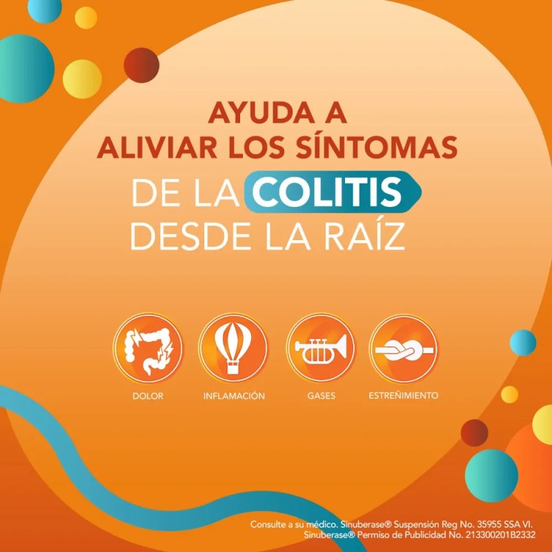 Experimenta un alivio profundo y prolongado para la colitis con Sinuberase, el aliado perfecto para tu bienestar digestivo. Este innovador producto, enriquecido con Bacillus Clausii, ofrece una solución eficaz desde la raíz, aliviando síntomas incómodos como el dolor y la inflamación abdominal, los gases y el estreñimiento. 🌟