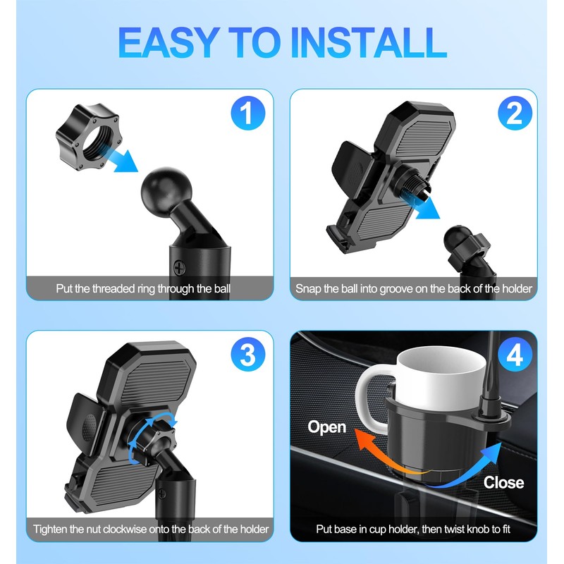 ✅ Flexible Adjustable Gooseneck: By adjusting the flexible gooseneck, you will get the best angle and position. The phone holder will hold your phone firmly in place without worrying about movement when you accelerate or make sharp turns. When not needed, the mounting part of the phone can be removed from the cup holder.