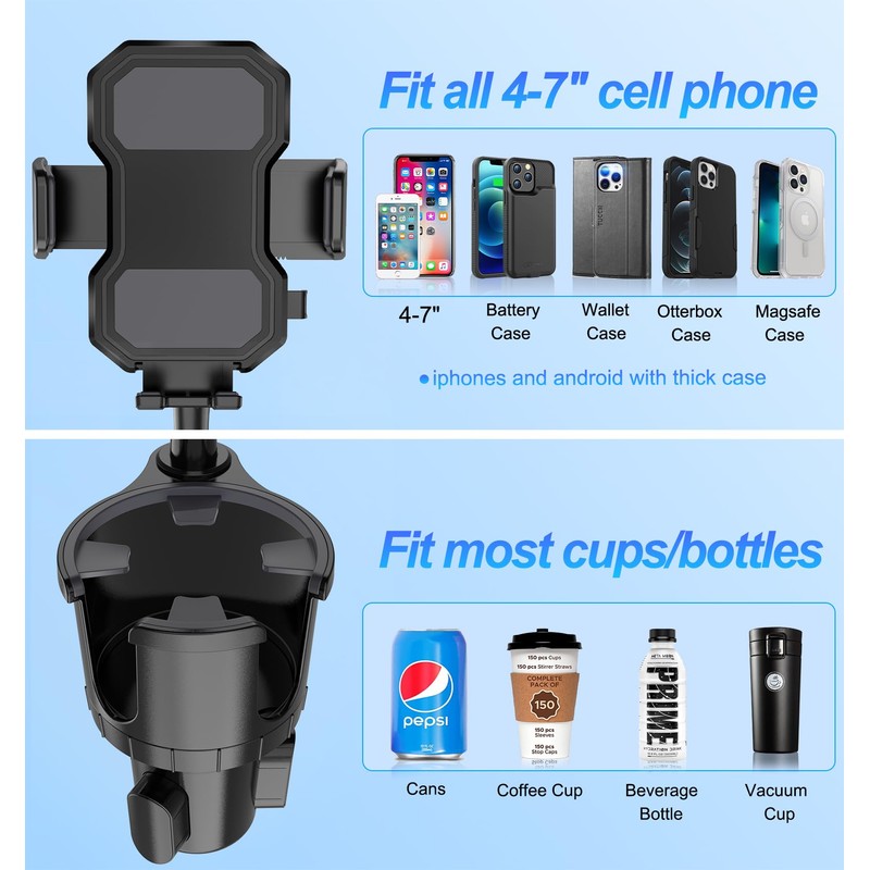 - 👏【2 in 1 CAR CUP PHONE HOLDER】The perfect combination of phone mount and car cup holder, designed to keep the oversized bottle firmly in place while securing your mobile phone. The amazing two-in-one design enables you to use every space in your car wisely