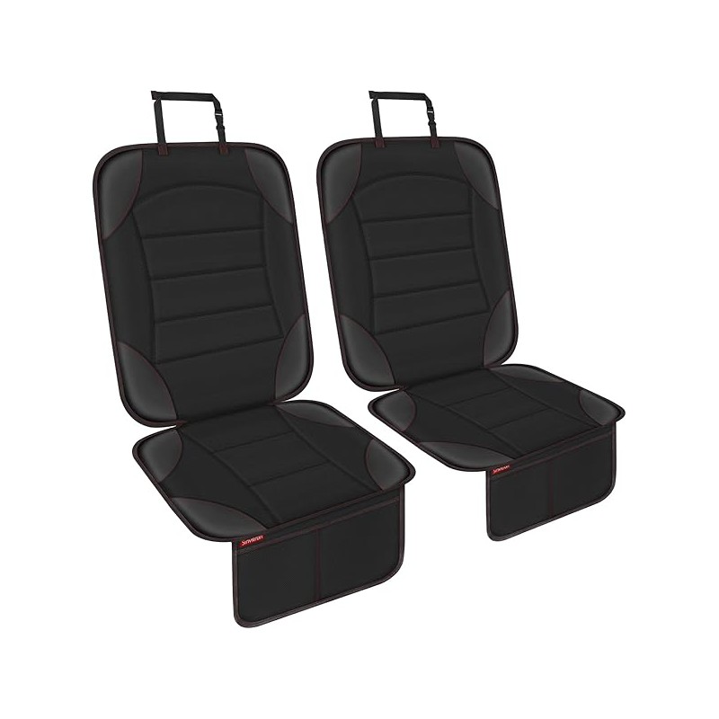 Sinvitron Car Seat Protector for Child Car Seat - Waterproof Non-Slip Leather Mat with 2 Mesh Pockets, Universal Seat Cover for Baby, Pets & Vehicles(2-Pack,Black)