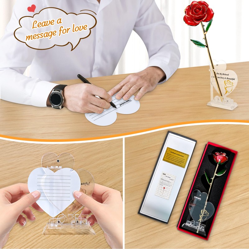 - 🌹【Shop with Confidence】Our rose set includes a 24K gold rose, crystal heart-shaped stand, pamphlet, certificate of authenticity, and a greeting card. Enjoy worry-free shopping with our 30-Day Unconditional Return Warranty. Elevate your gift-giving with peace of mind.