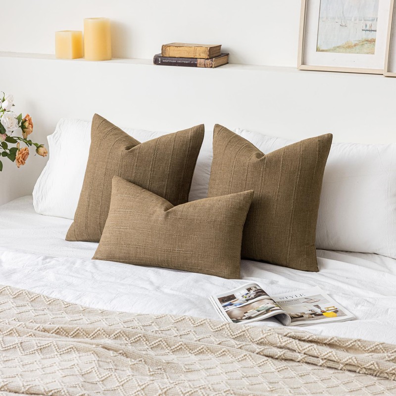 - 【Premium Customized Linen Blend Fabric】Crafted from our exclusive custom-woven fabric—a luxurious blend of linen and polyester with a 3D striped texture—these throw pillow covers offer a soft, breathable, and organic feel perfect for year-round home décor.