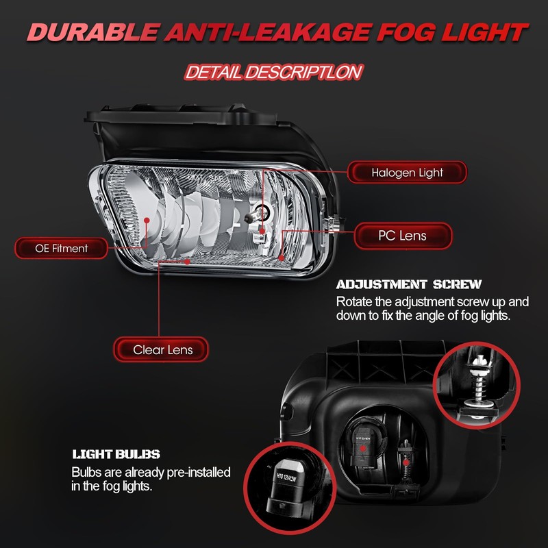 - High Quality Fog Lights: Precision optics ensure a controlled light concentration for enhanced visibility. The PC lens offers superior UV protection and impact resistance, while the rugged housing effectively prevents moisture and dust ingress