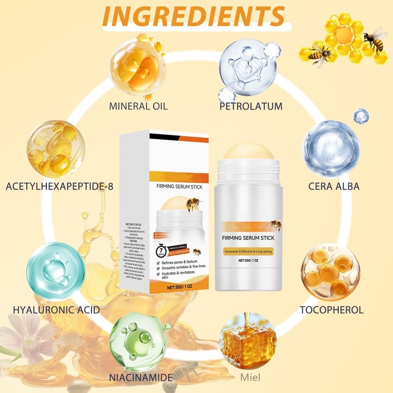 - Efecto antienvejecimiento】Use nuestro Bee Firming Serum Stick para restaurar una piel suave, tersa y de aspecto saludable, mejorar la elasticidad de la piel y no irritar.