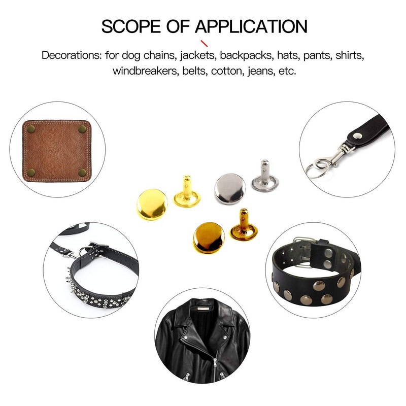 • Wide Applications: Both sides of the rivets have a cap that makes it look good. These leather rivets are ideal for DIY crafts or to wear clothes like shoes, hats, jeans, jackets or any other use that you want.