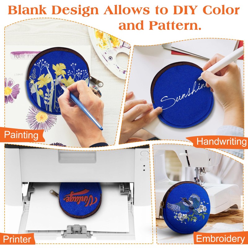 Sinzip 6 Pieces Mini Round Cotton Canvas Makeup Bag with Bottom, Multi-Purpose Zipper Coin Purse Pouch Cosmetic Bag Travel Toiletry Pouch, Blank DIY Craft Bag (Multicolored, XS)
