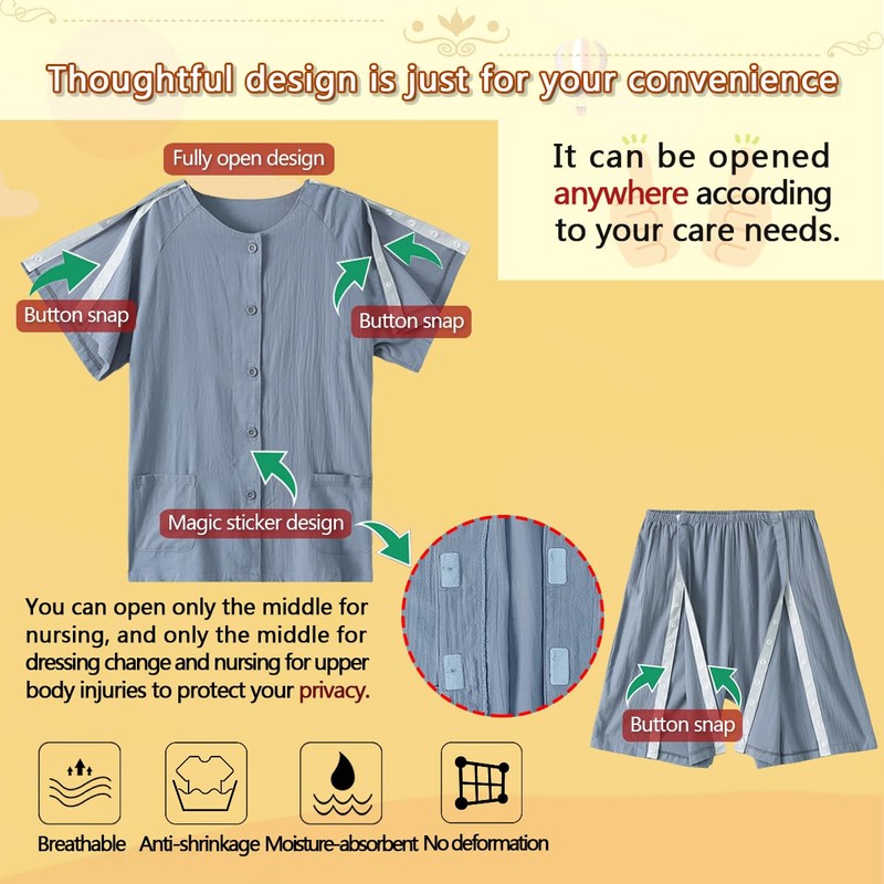 - 【Wide Applicability】Suitable for fractures, bedridden, postoperative rehabilitation, incontinence, paralysis, acupuncture treatment, dialysis chemotherapy, examination scrub, breast surgery, heart bypass surgery, physical therapy, the elderly, etc. It is a must-have piece of clothing for anyone with limited mobility and a very suitable gift for postoperative patients.