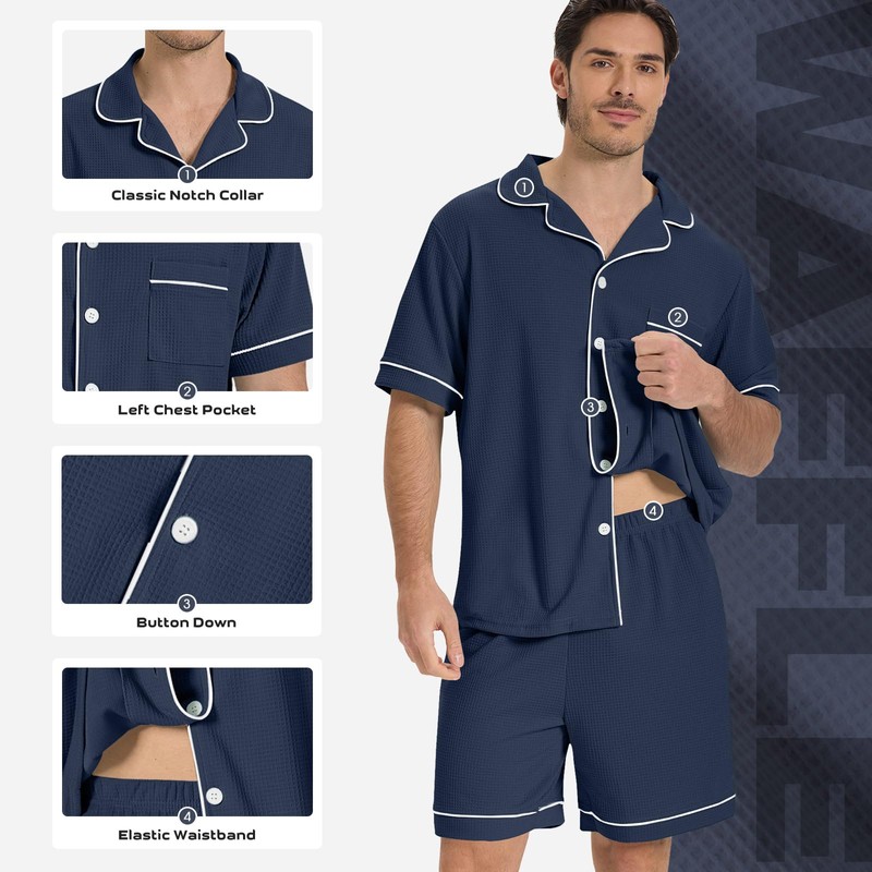 - Convenient Pockets: Equipped with functional side pockets, this men's short sleeve pajama set allows you to carry essentials like your phone, keys, or remote control with ease. Thoughtfully designed for modern men, waffle knit loungewear adds practicality to your everyday comfort without compromising on style.