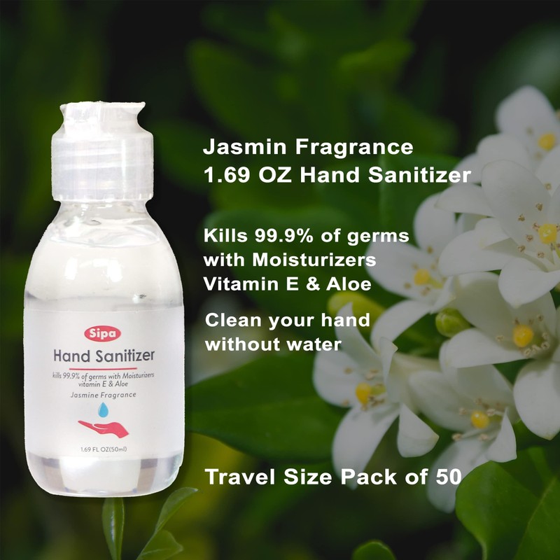 SIPA Hand Sanitizer 1.69 oz/ 50 ml, Travel Size, Flip Cap Bottle each, Refreshing Soothing Gel with Aloe, and Vitamin E (Pack of 50)