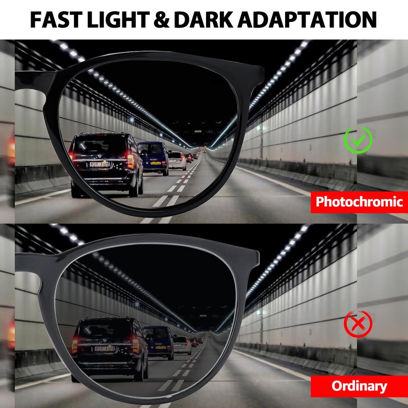 ➤Photochromic sunglasses are lenses that change tint according to the light intensity. They are clear indoors and darken when exposed to UV rays from the sun.