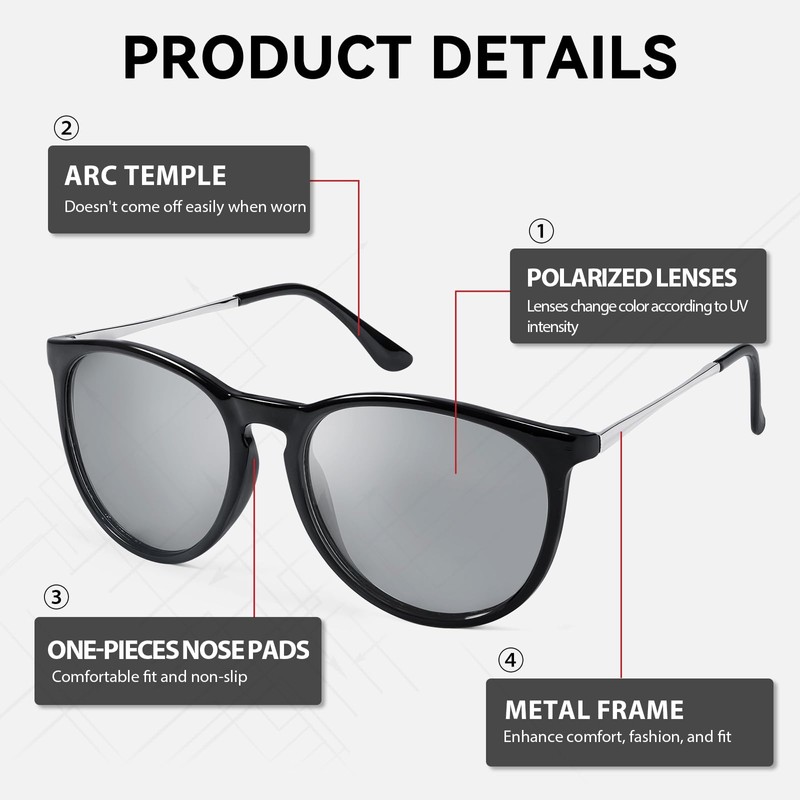 - STURDY& LIGHTWEIGHT: These photochromic sunglasses are made of metal and plastic, which is lightweight, sturdy, and resistant to deformation. Ideal for driving, shopping, running, fishing, golfing, and other outdoor activities.