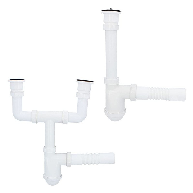 Siphon Diameter 50 mm for Sink and Washbasin with Drain Strainer Metal Strainer & Plug for Sinks Siphon Sink Drain Fitting Sink Accessories Syphon Bathroom Kitchen Sink Drain Pipe Drain