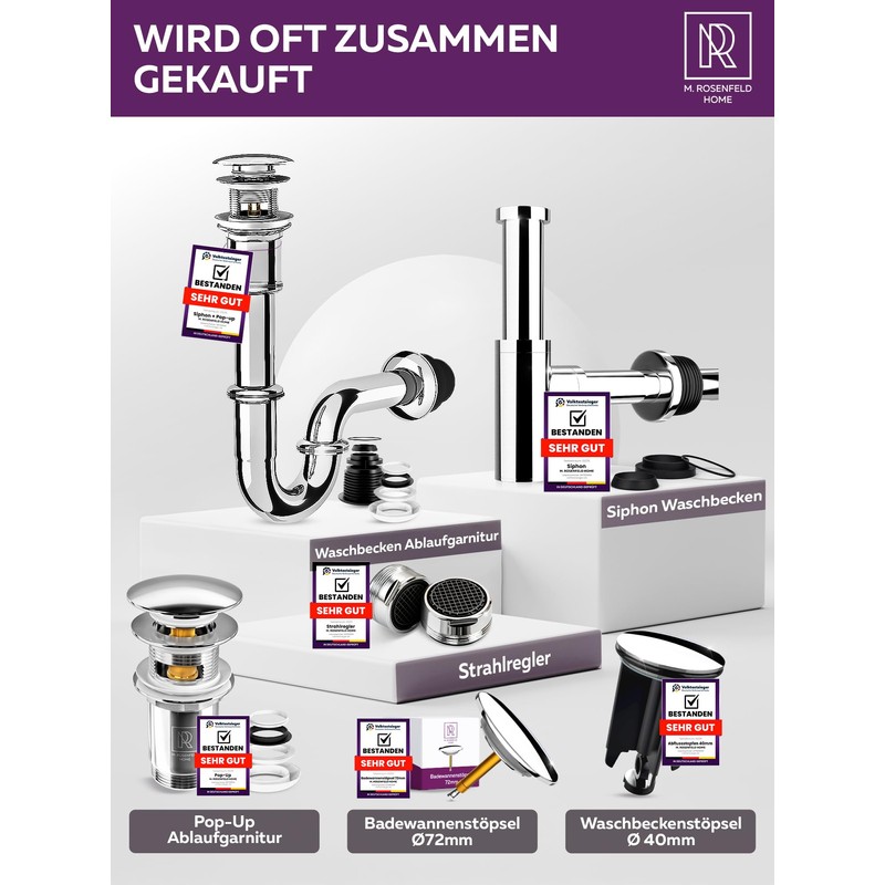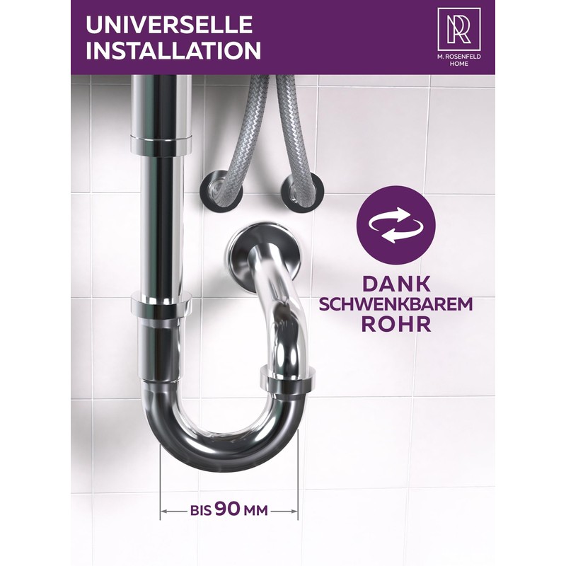 An integrated odour trap reliably protects against unpleasant drain odours. Thanks to the modern chrome design with chrome-plated union nuts, the siphon blends harmoniously into any bathroom.