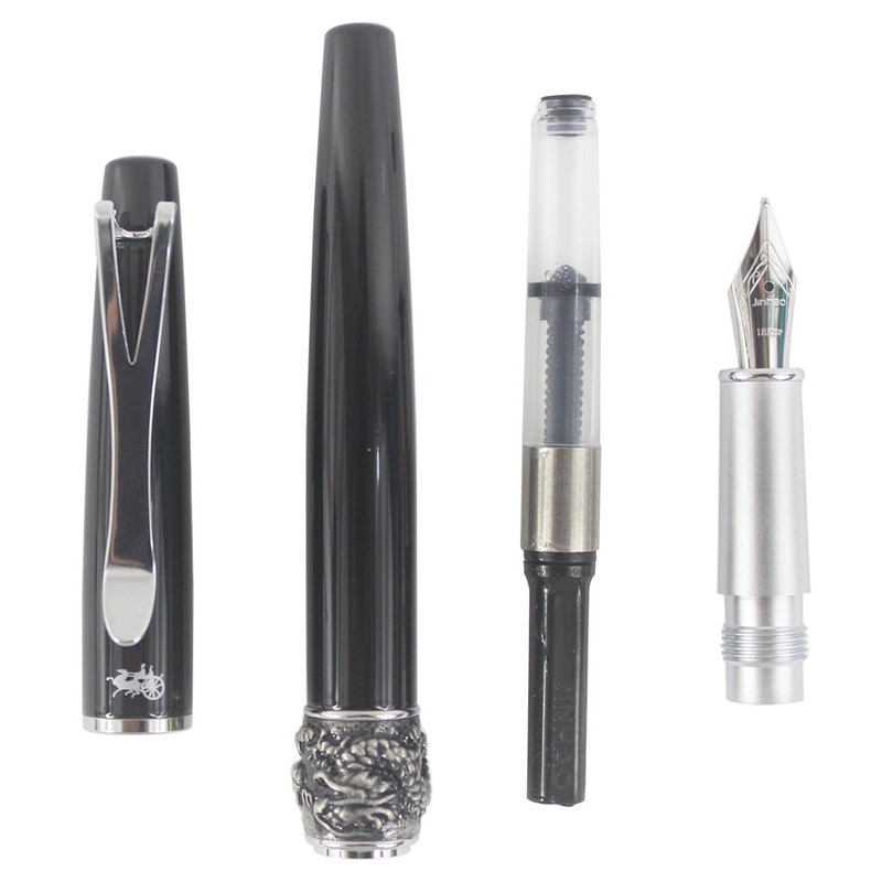 Sipliv Classic hobaringudoragon Fountain Pen, Elegant Silver Clip On , black