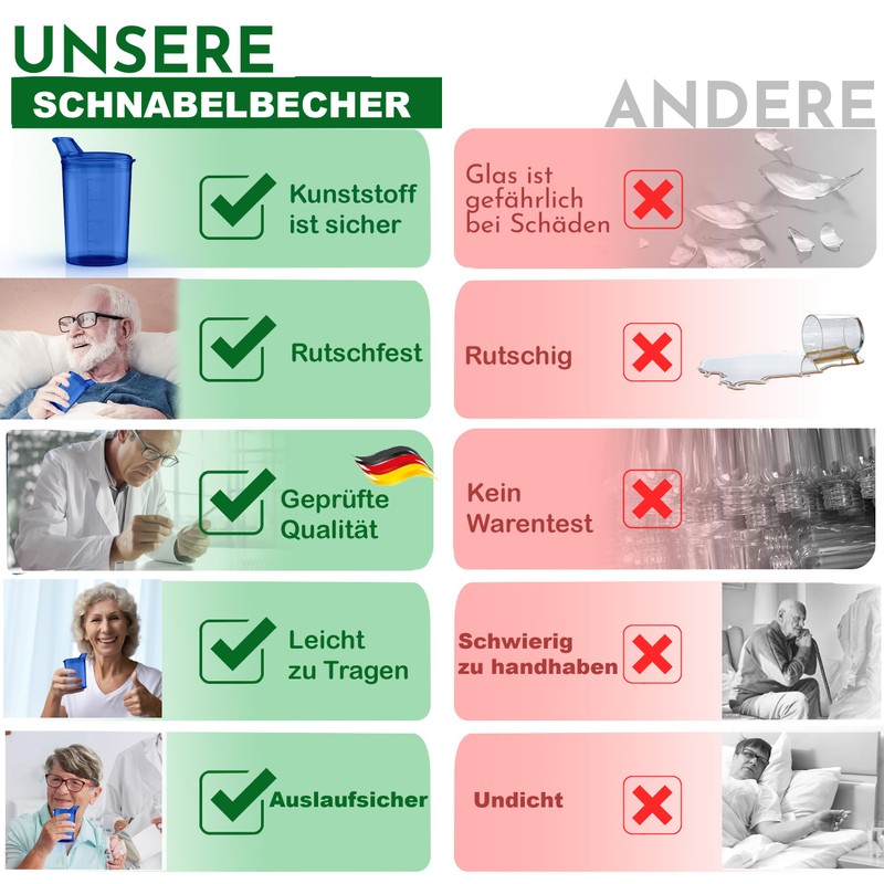 - Drink without protection: our sippy cups are designed to make drinking easier while minimising the risk of spills. They are ideal for both children and the elderly.