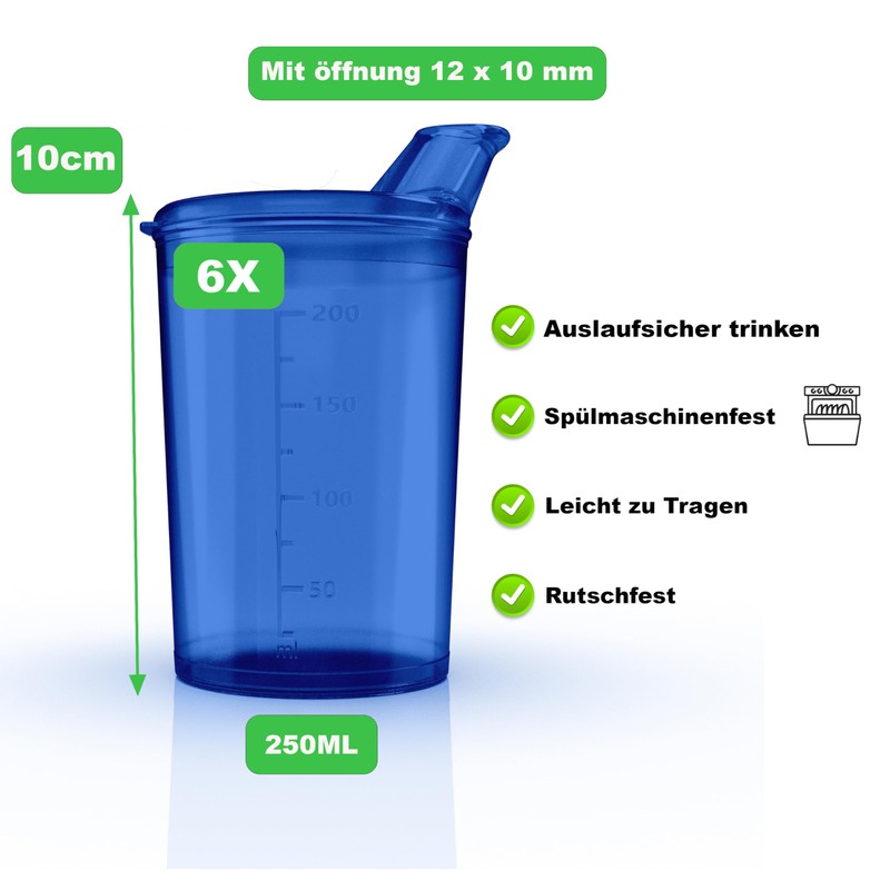 Sippy Cups with Lids 250 ml Sippy Cups for Seniors Blue Set of 6 Cups with 6 x Lids Opening 12 x 10 mm Drinking Cup with Lid Drinking Cup Baby (Blue)