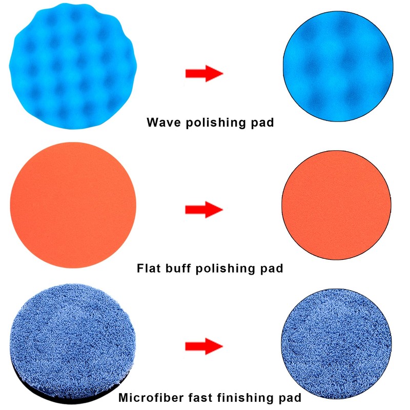 - Practical polishing set: different color sponges with different softness, meet your different polishing needs, the 7 inch buffing polishing pads are suitable for polishing rough and small areas, and the car buffer polisher pads can be used in pneumatic or electric polishing machine as well; cutting and polishing efficiently, useful to the dysoxidizable car coating, scratches