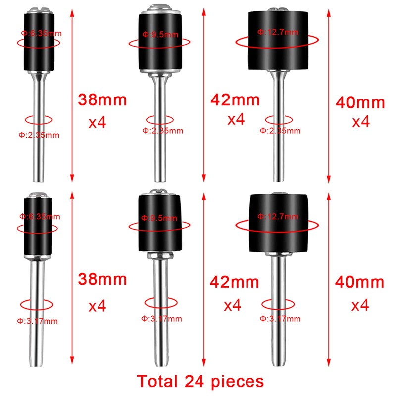 - Universal drum mandrels - 24 Pcs shank reusable sanding drum are divided into in 3 diameters(1/2", 3/8" & 1/4"), each size 8 pieces. Common and standard size fit for all rotary tools