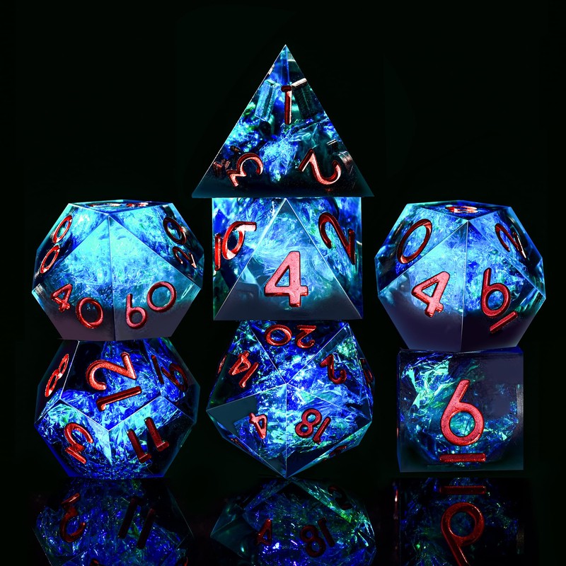 • 7-dice DND dice set: comes with a complete set of 7 dnd dice including D4 x 1, D6 x 1, D8 x 1, D10 (0-9) x 1, D12 x 1, D20 x 1 and D% (00-90) x 1, and comes with a PU foam lined storage box to present and store your polyhedral .