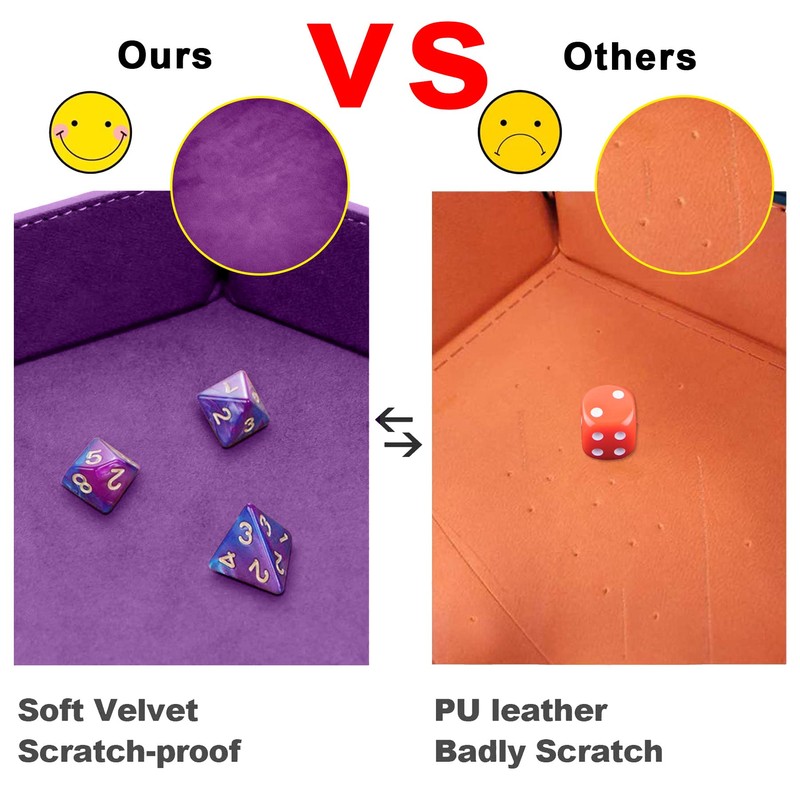 - Dice Board - Package includes 4 pieces dice tray in 4 colors: black, cyan, purple and royal blue. These dice trays are perfect for DND and other dice games.