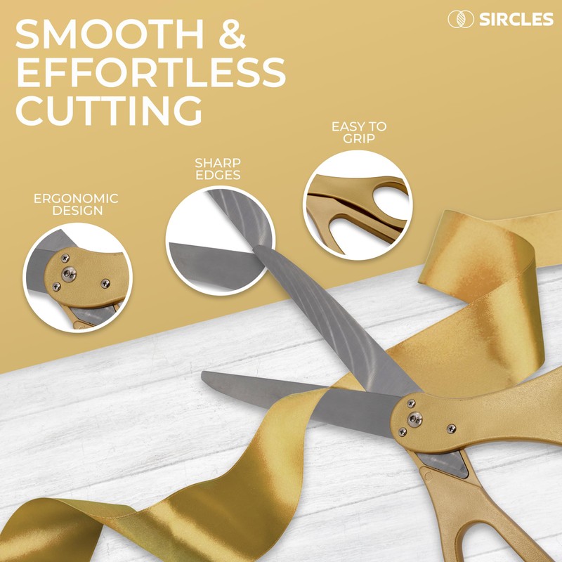SIRCLES SIRCLES Grand Opening Ribbon Cutting Ceremony Kit - 25" Giant Scissors, 5yd of 4" Wide Ribbon, 10ft Banner, 8 Gold & 8 White Balloons, 19 ft Banner Rope, 2 Rolls Balloon Ribbon - Grand Opening Kit
