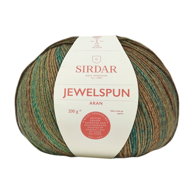 - Jewelspun Aran by Sirdar is an opulent, multi-coloured yarn giving the look of handspun yarn in a practical, easy-care 100% acrylic blend.