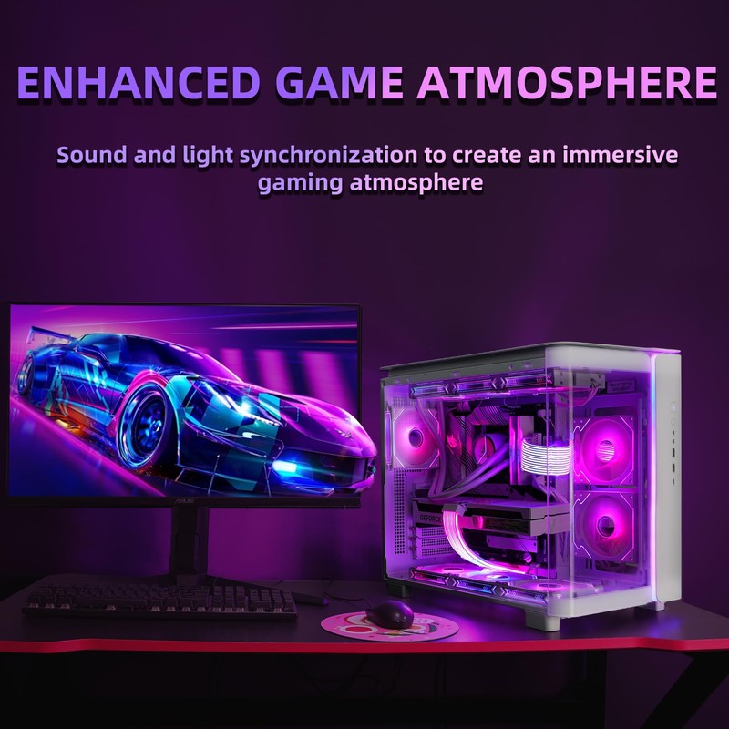 • 【Addressable ARGB】Support ASUS,MSI,GIGABYTE,ASRock and other motherboard addressing software,adjust various lighting modes and dazzling colors,and link lighting effects with compatible devices,including motherboards,graphics cards,RGB fans,and other computer peripherals to create an integrated lighting experience