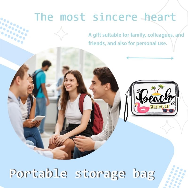 Sisadodo Clear Plastic Bags for Beach Lover Holiday Gifts for Women Men Clear Travel Makeup Bag for Handbag Suitcase Waterproof Transparent Cosmetic Toiletry Bag for Beach Survival Kit with Strap