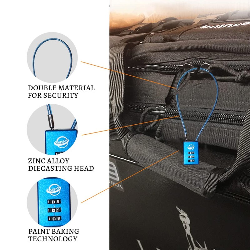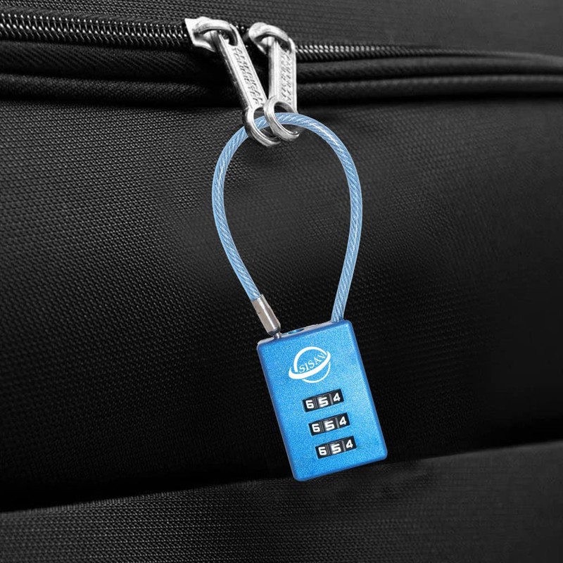 SISAV 3 Digit Cable Combination Lock 12 Cable for School Gym Locker Filing Cabinets Helmet Toolbox Luggage Case Backpack Blue 2 Pack Special design: The padlock is made of zinc alloy, the 30cm long steel cable is made of 4.8mm thick cable for strength and flexibility, compact size, light weight and convenient to store and carry Difficult to crack: Set your own 3-digit combination, offers 1000 combinations. Please remember your combination