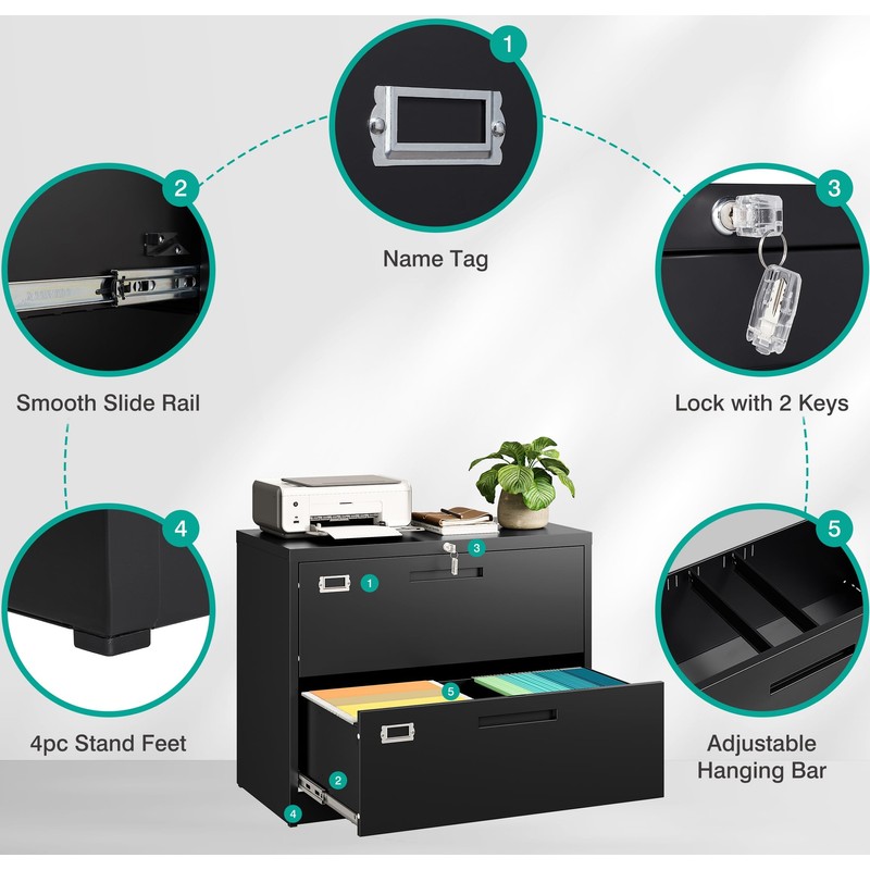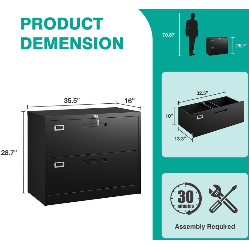 - 【Wide File Cabinet】: Deep & Wide lateral file cabinet is sturdy and durable, with an all-metal design; coated with electrostatic phosphorus-free epoxy spray coating, making it very strong and resistant to corrosion and rust; the top of the office vertical file cabinet can withstand up to 120 pounds the weight of. The sturdy construction makes this cabinet sturdy and durable, making it ideal for extended use in the home or office.
